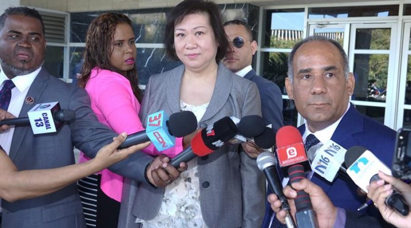 El abogado George Andrés López Hilario al salir de la Suprema Corte de Justicia, cuando depositó el recurso de amparo junto a la inversionista Huang Kitty Qua, de China.